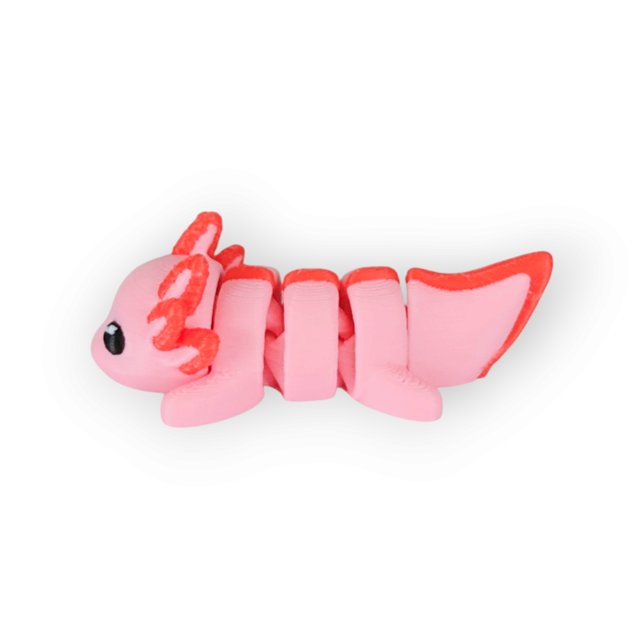 Meet your new wiggly friend! This cute 3D printed axolotl is flexible, fun to play with, and loved by kids of all ages.